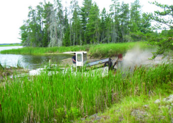 On Wednesday, July 7, the park staff pushed two floating cattail mats, found north of Sullivan Bay on Lake Kabetogama,...